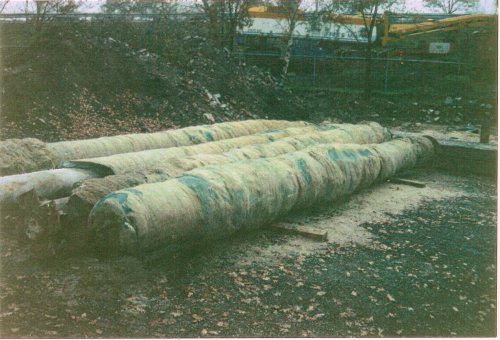 schroefinjectiepalen, na verharding verwijderd uit de grond
