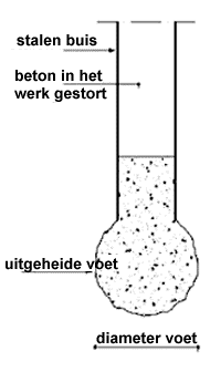 diepte is, wordt een verbrede voet onder de paal gevormd. De grootte van de voet wordt